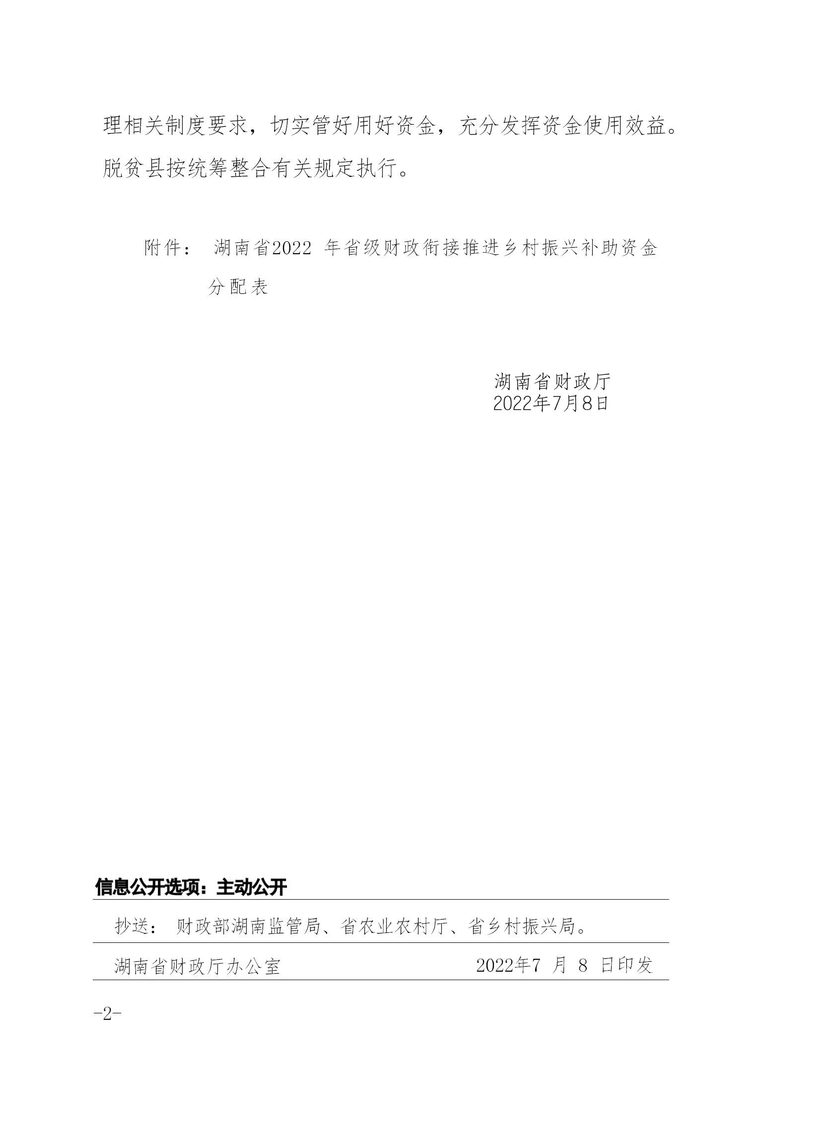 湘財(cái)預(yù)〔2022〕168號(hào) 關(guān)于下達(dá)2022年省級(jí)財(cái)政銜接推進(jìn)鄉(xiāng)村振興補(bǔ)助資金的通知