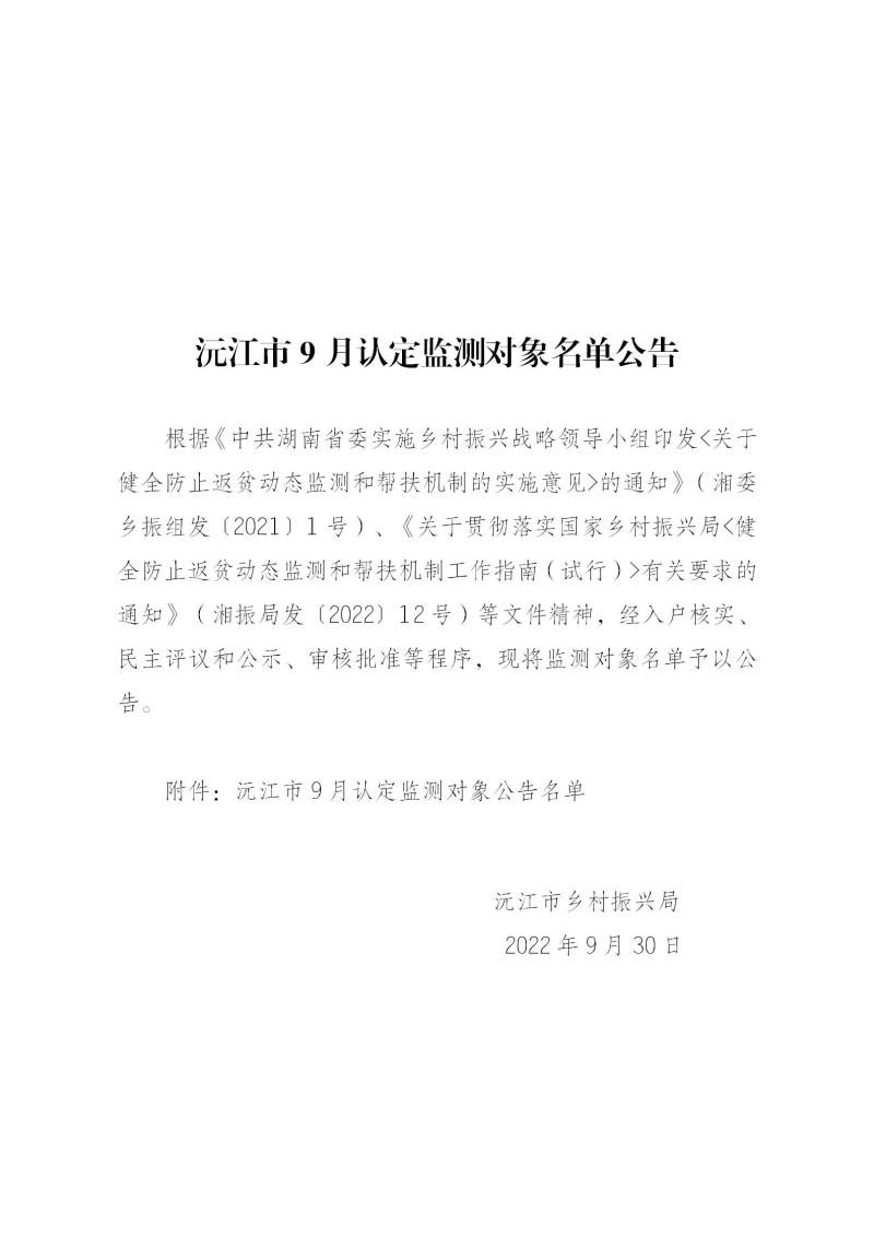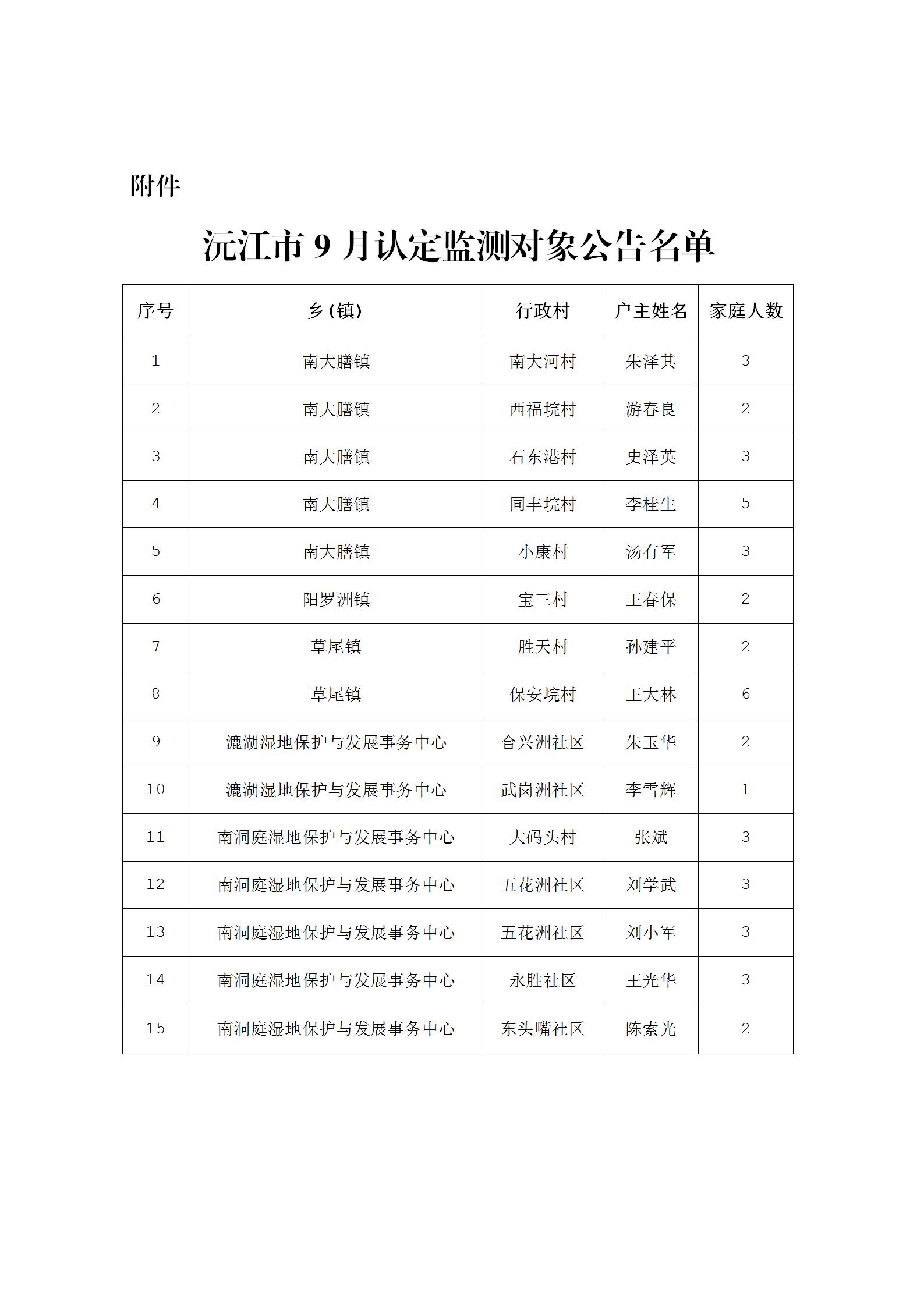 沅江市9月認(rèn)定監(jiān)測(cè)對(duì)象名單公告