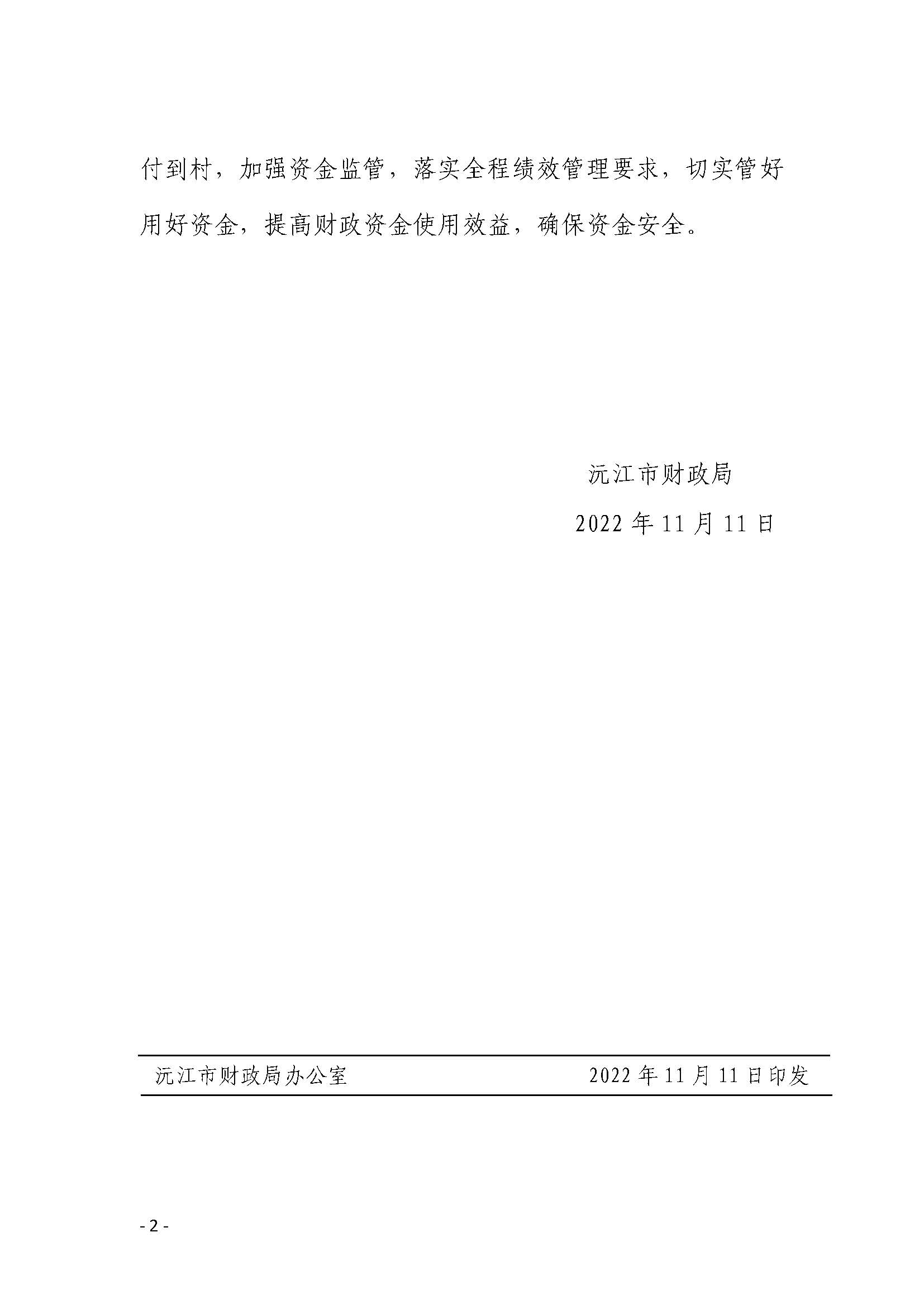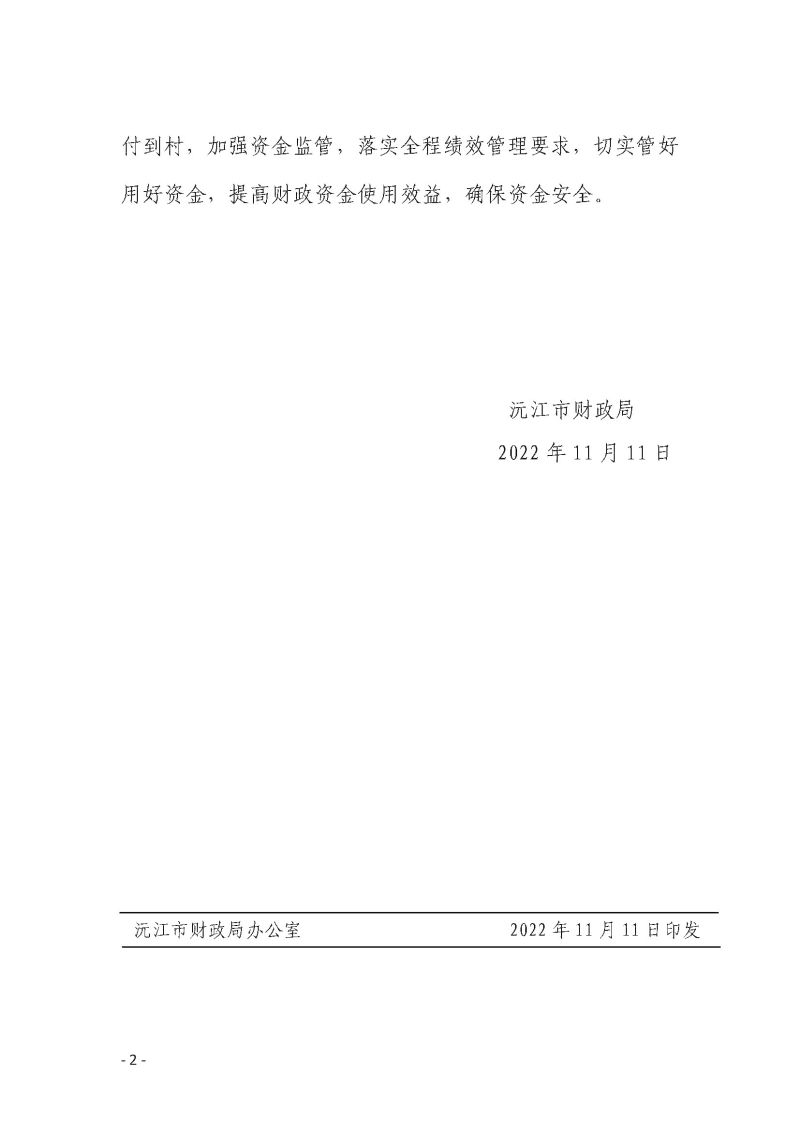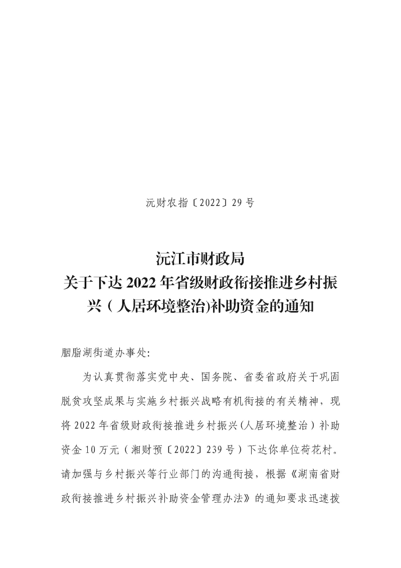 沅財農指〔2022〕29號 沅江市財政局關于下達2022年省級財政銜接推進鄉村振興補助資金的通知