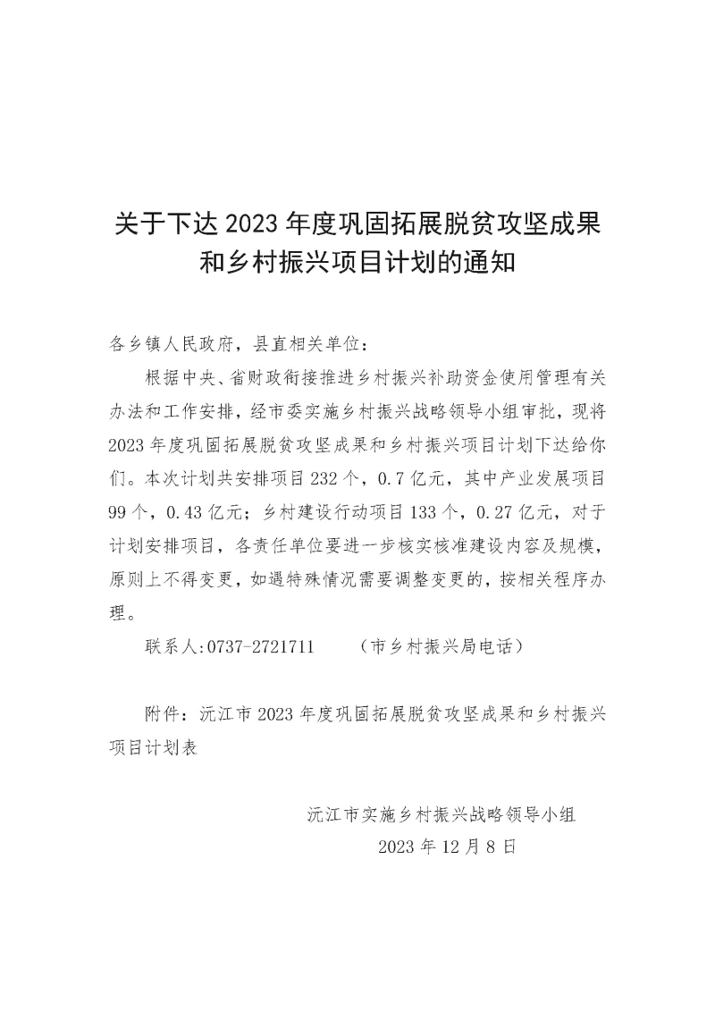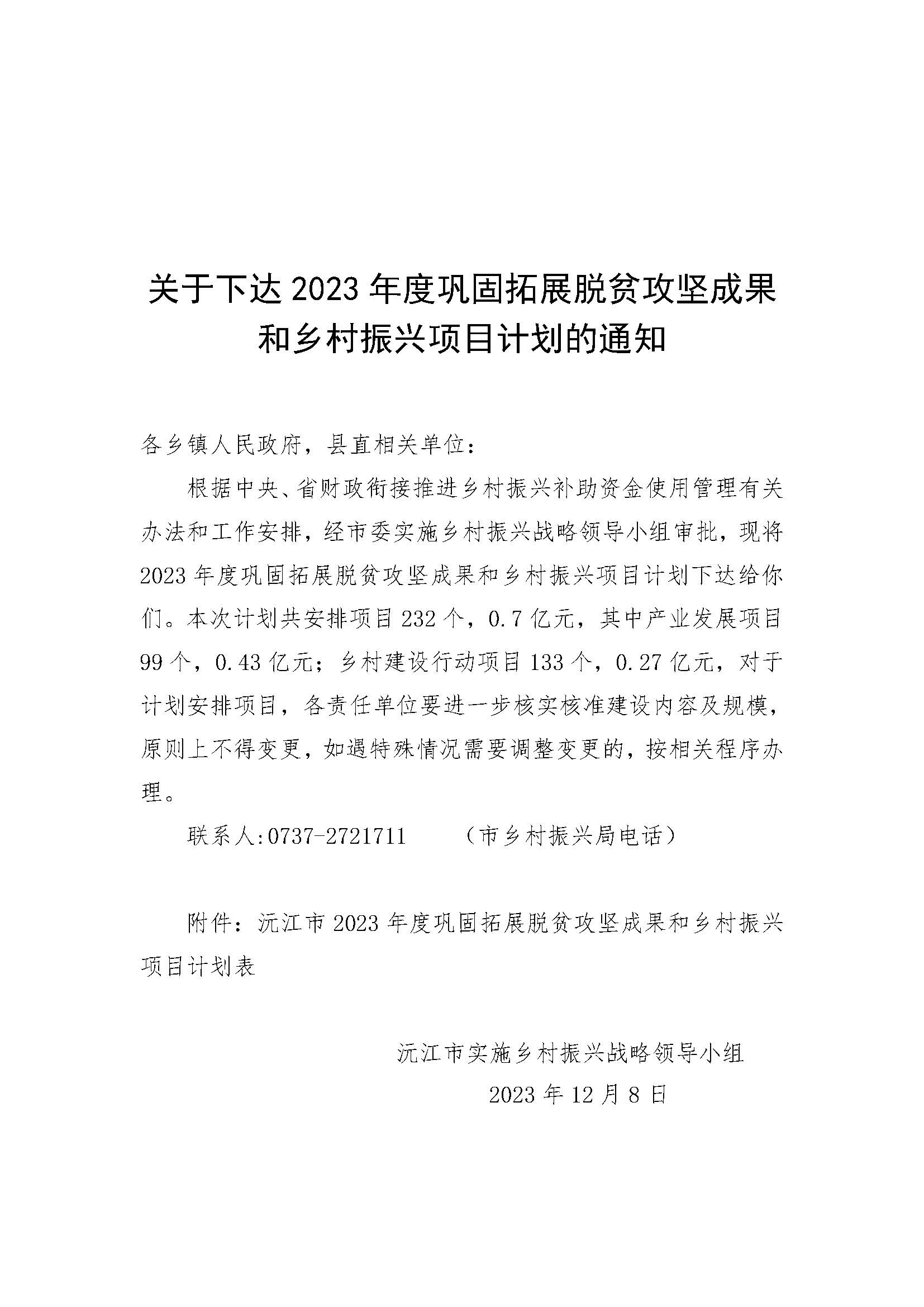 關于下達2023年度鞏固拓展脫貧攻堅成果和鄉(xiāng)村振興項目計劃的通知