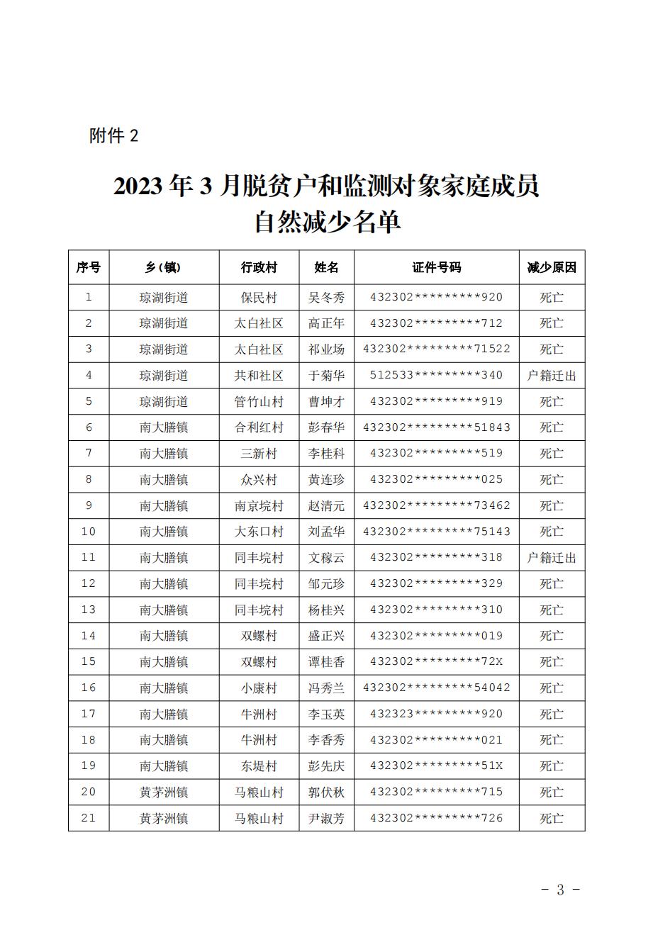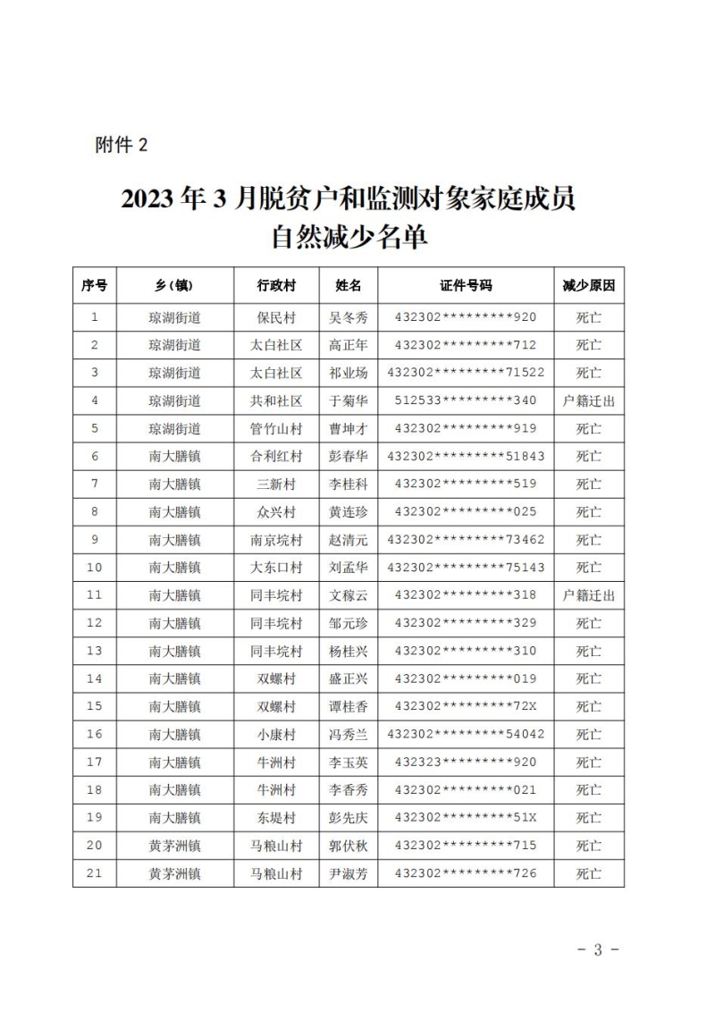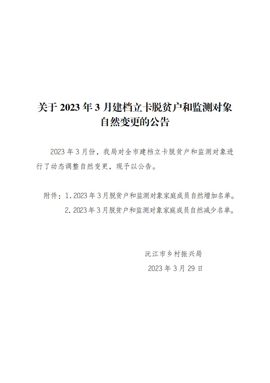 關于2023年3月建檔立卡脫貧戶和監測對象自然變更的公告