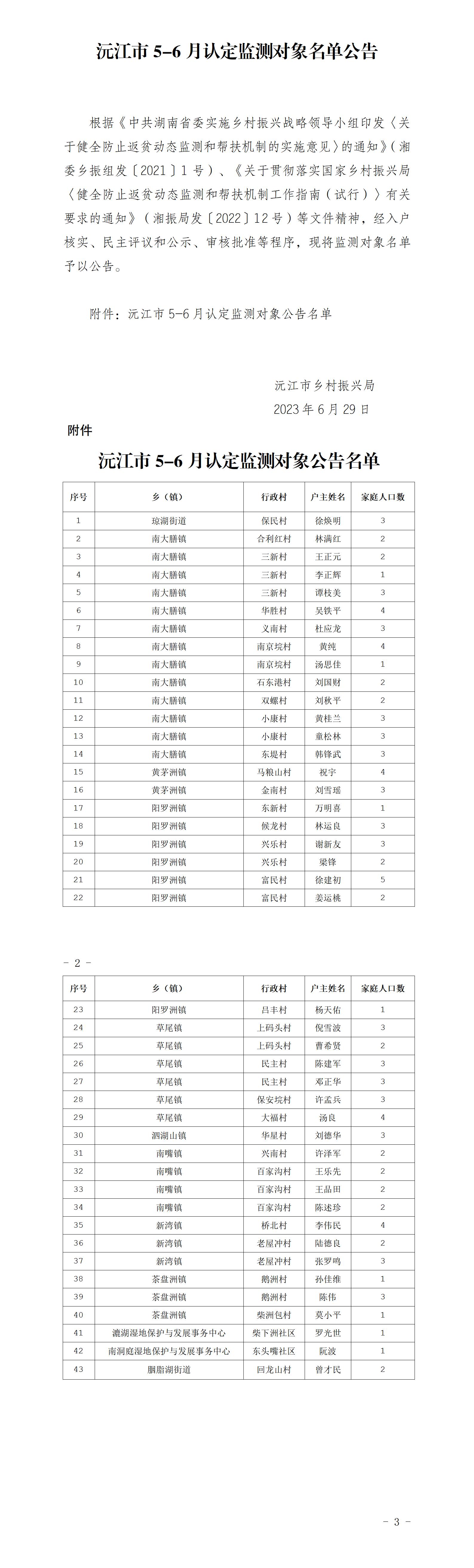 沅江市5-6月認(rèn)定監(jiān)測(cè)對(duì)象名單公告
