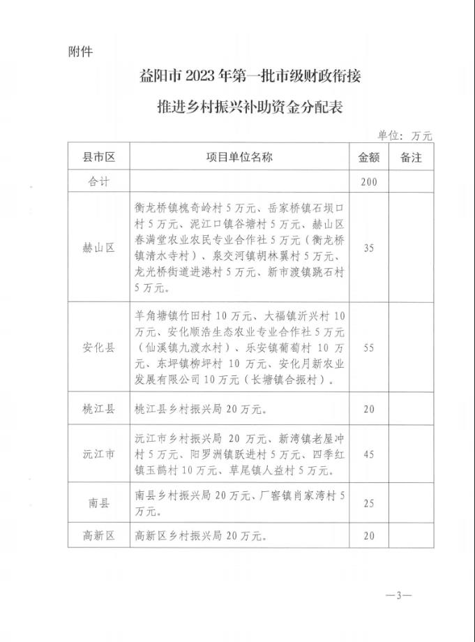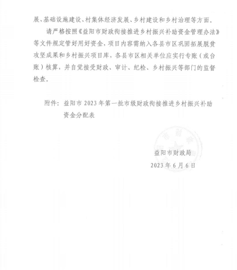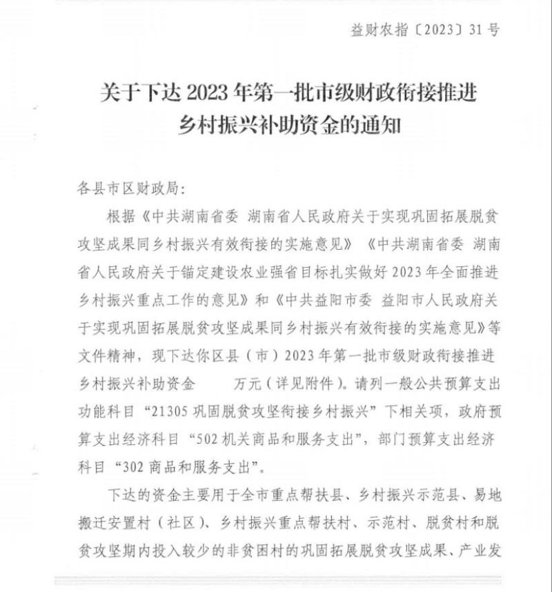 益財農指〔2023〕31號關于下達2023年第一批市級財政銜接推進鄉村振興補助資金的通知