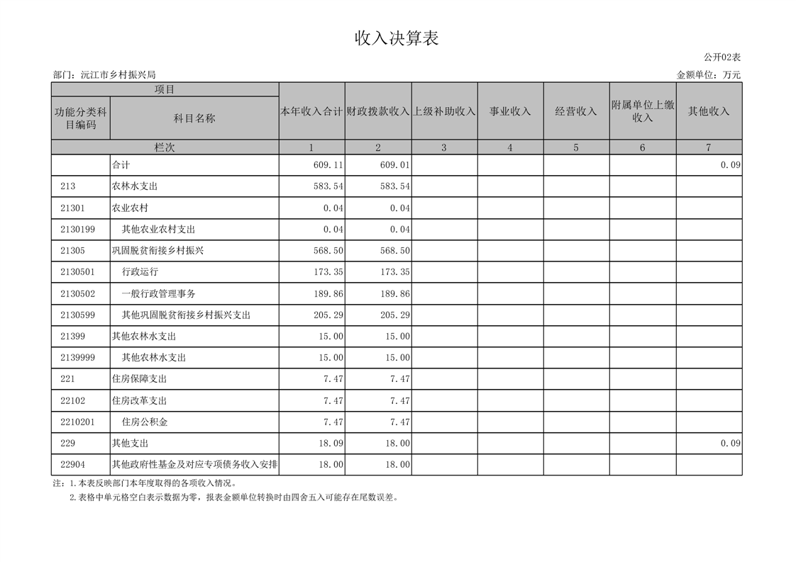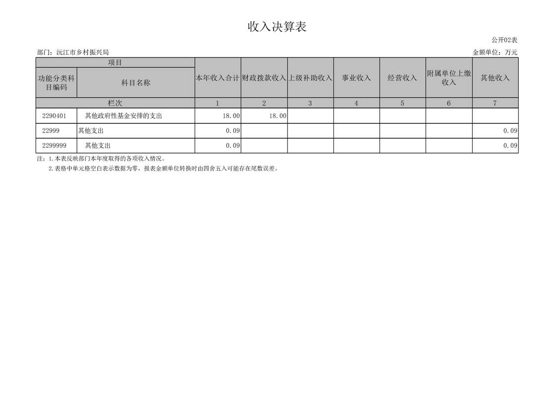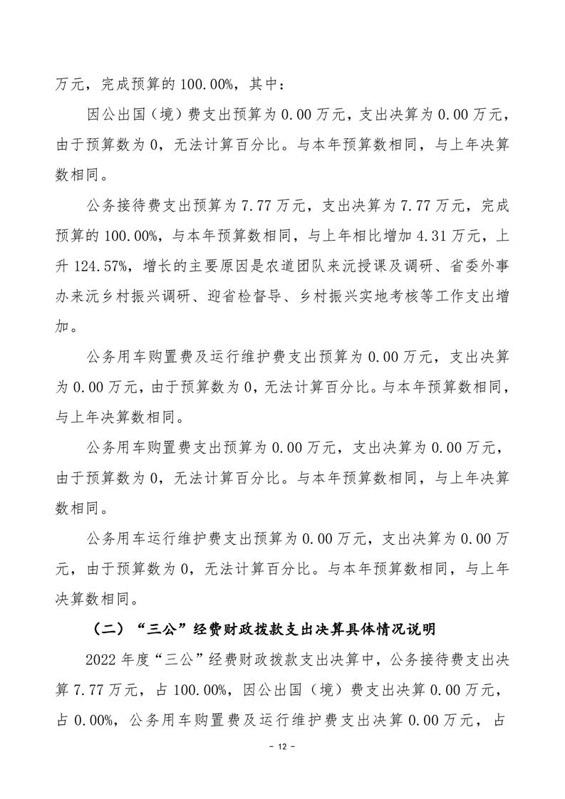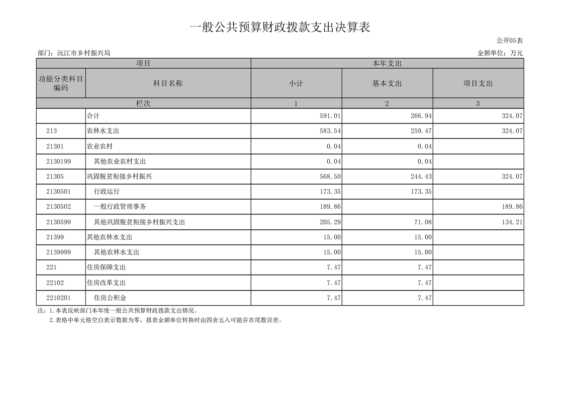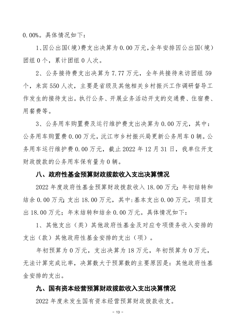 2022年度沅江市鄉村振興局部門決算