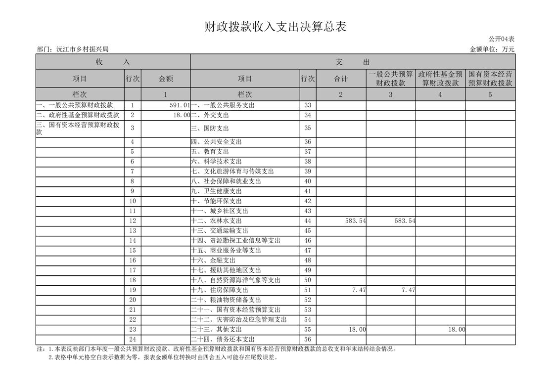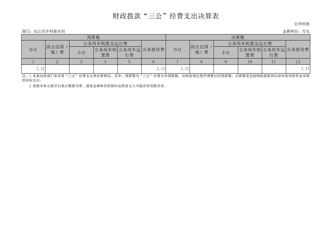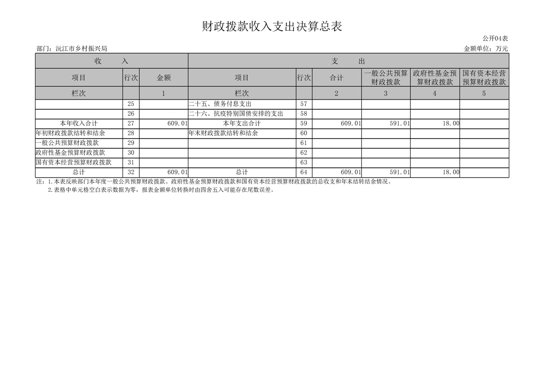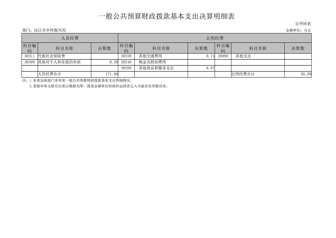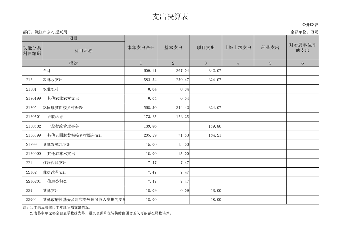 2022年度沅江市鄉村振興局部門決算