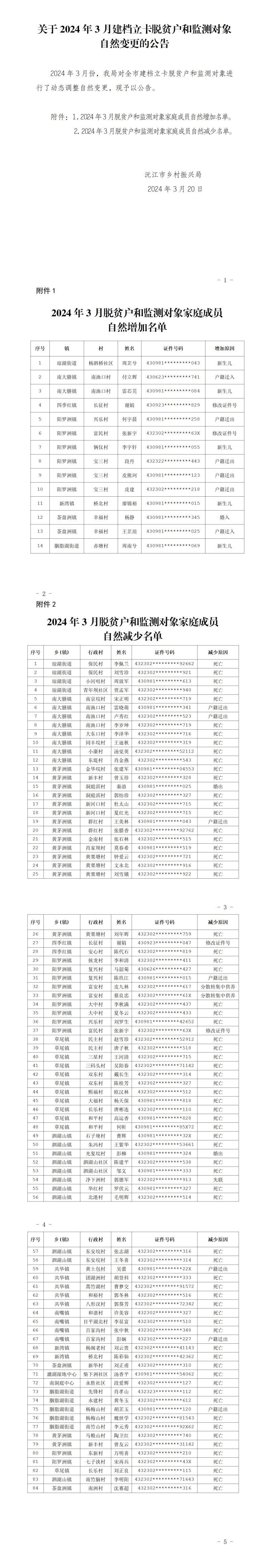 關于2024年3月建檔立卡脫貧戶和監測對象自然變更的公告