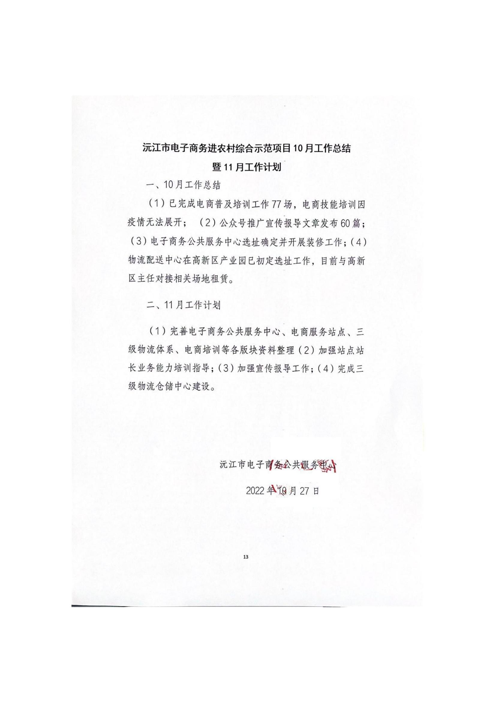 沅江市電子商務進農村綜合示范項目10月工作總結暨11月工作計劃