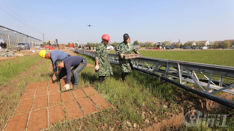 農(nóng)業(yè)技術(shù)推廣研究員程樂根表示:“我們在‘天車’上安裝了整套噴淋系統(tǒng),將原本的大水漫灌方式轉(zhuǎn)變?yōu)樘燔囓壍郎系能壍绹娏堋H绱艘粊恚軌蛴行p少水分對秧苗的損害,增強(qiáng)根系活力,提升秧苗素質(zhì)。”