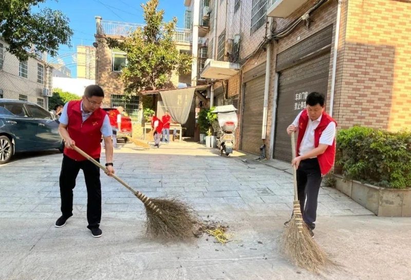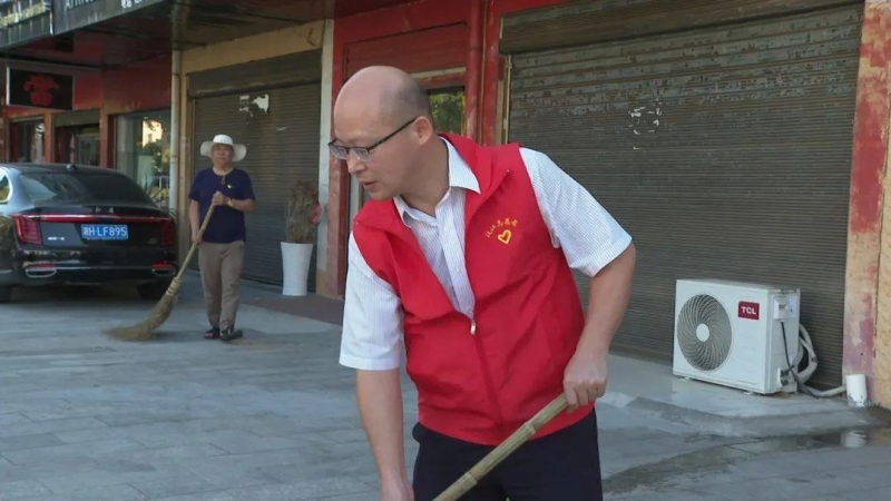 8月12日,市委常委、市委辦主任周軍在金田社區參加衛生清掃