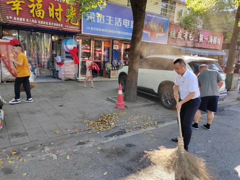 8月12日,沅江市委副書記、統戰部部長侯耀森帶領聯點湘北社區部門單位對街區衛生進行清掃清除