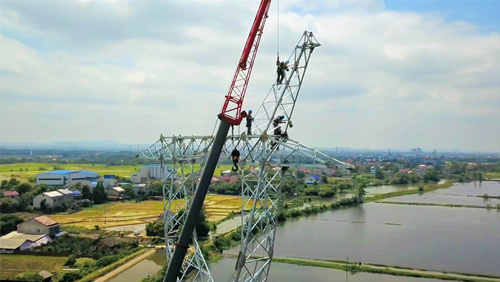 目前,該工程已完成全部基礎施工任務和98%的鐵塔組立任務,每天有20多個施工班組、40多個作業面、近500名作業人員同步開展現場作業,各類機械化施工設備的投入,有效壓降施工風險,為工程建設如虎添翼。