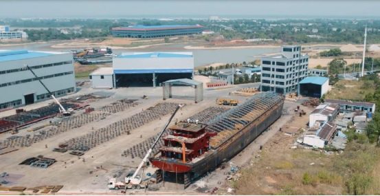 湖南桃花江游艇制造有限公司正在建造的5000噸級散貨船。