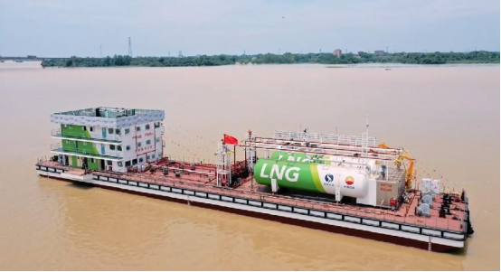 產自沅江船舶制造產業園的湖南省首艘200立方LNG新能源油氣加注船。