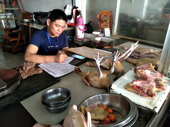 在西區集貿市場一家禽類銷售攤位前,執法人員通過砝碼稱量和檢查,發現這家店使用的電子秤存在不少貓膩,在確鑿證據面前,攤主不得不承認計量作弊的事實。針對這一情況,執法人員依法對電子秤進行查封扣押。