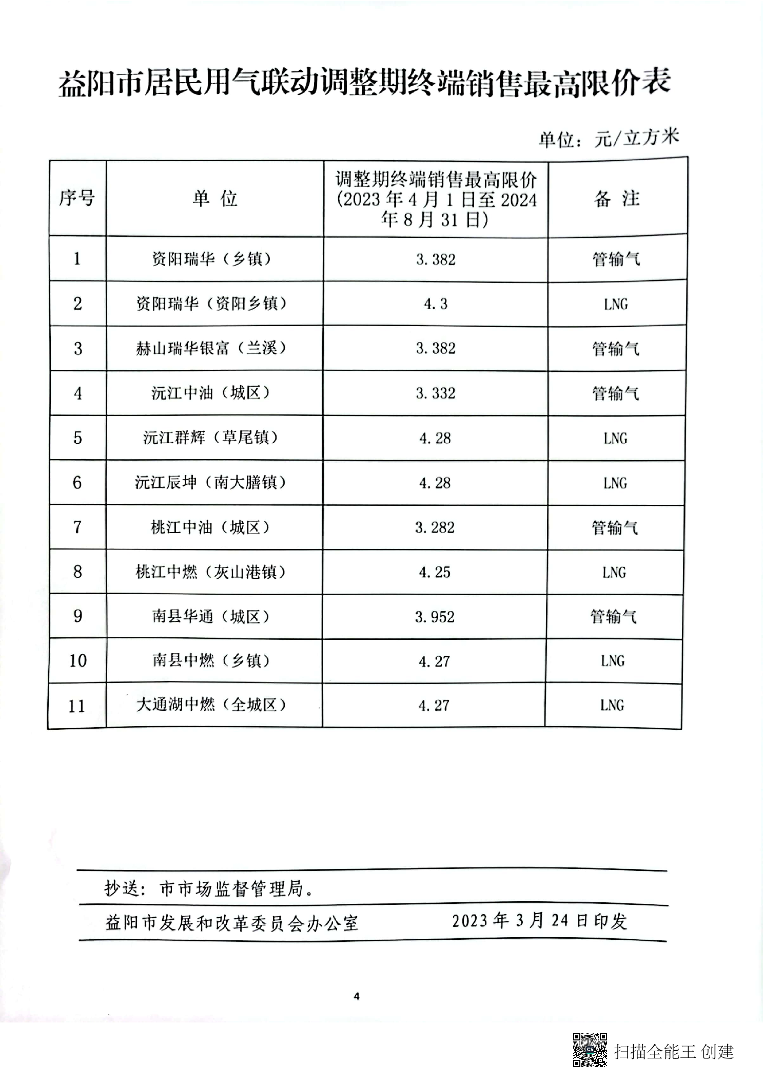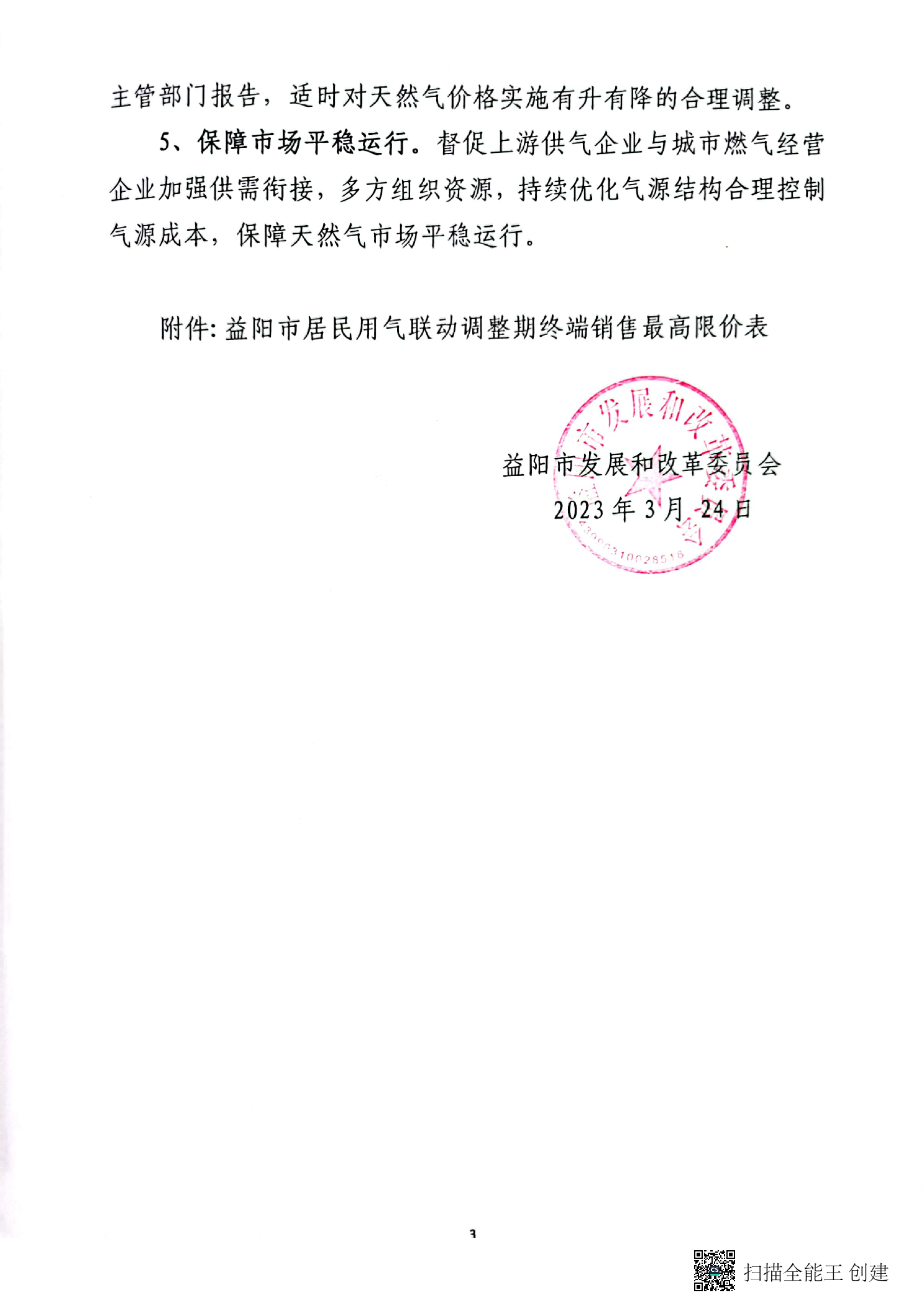 益陽市發展和改革局委員會關于聯動調整居民用氣終端銷售價格的通知
