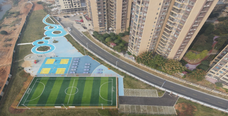 該項目地處瓊湖街道太白社區,主要包括室內場館區與室外設施區。室內場館區位于上瓊湖北岸、上瓊路南側 ,占地約1.1萬平方米,球館面積約0.35萬平方米,設2片網球場、籃球場、羽毛球場,后續可按照省運會門球比賽需求改成4片室內標準門球賽場。室外設施區位于汲水港北岸、北岸山路南側,占地約0.75萬平方米,設有五人制足球場、氣排球場等。